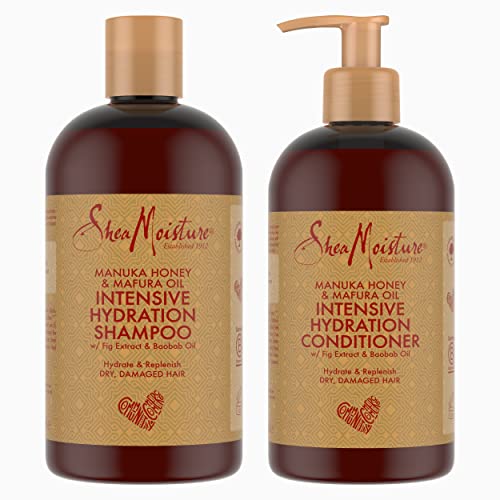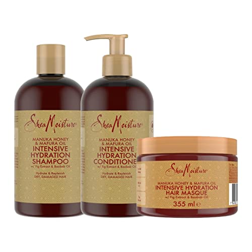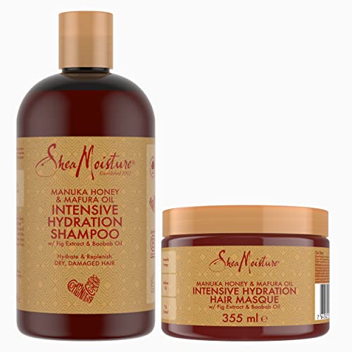 SheaMoisture Masque Soigne et Hydrate intensément 355ml + Shampooing Super Hydratant Miel de Manuka & Huile de Mafura, pour cheveux secs et abîmés, Hydrate intensément et Reconstitue 384ml