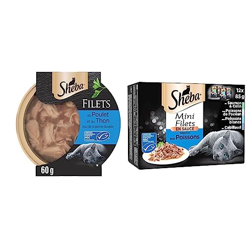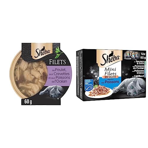 SHEBA Repas pour Chat - 72 Barquettes - Poissons Blancs/Thon/Saumon/Cabillaud & Repas pour Chat - 48 Sachets Fraîcheur - Poissons Blancs/Poissons de l'Océan/Cabillaud/Saumon