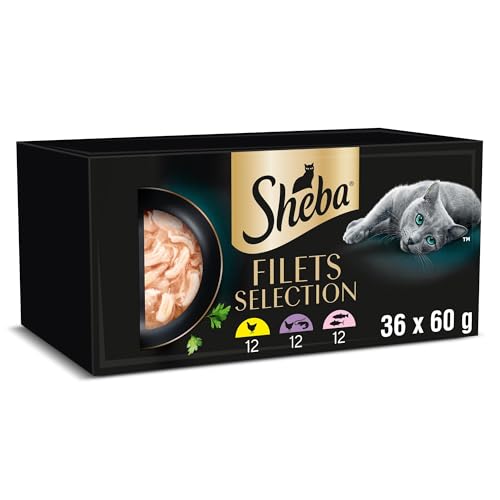 Sheba Filets Nourriture pour Chat Adulte en Sauce avec Poulet et Thon, Poisson Blanc, volaille et Saumon 36 x 60 g