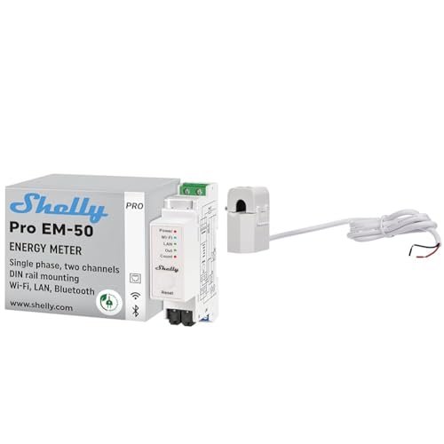 Shelly Pro EM 50A | Compteur électrique monophasé par impulsion | 2 canaux | LAN, Wi-Fi & Bluetooth & Split Core Current Transformer 50A | Pince ampèremétrique | Domotique