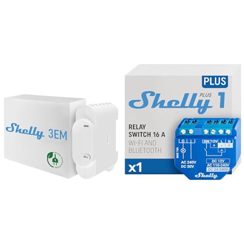 Shelly 3EM | Compteur d'énergie connecté Wi-Fi | 3 canaux -120A chacun | Contrôle des contacteurs & Plus 1 | Interrupteur/commutateur de relais connecté - 16A | Wi-Fi & Bluetooth