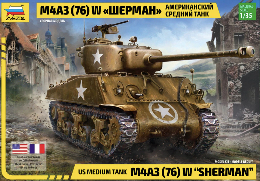 M4A3 (76) W SHERMAN U.S. Medium Tank (Décos France) - ZVEZDA 1/35 PLASTIC KIT