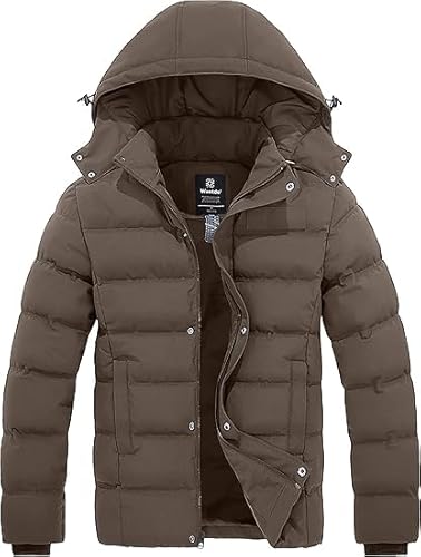 WenVen Homme Hiver Vestes en Coton Classique Coupe Mince Manteau à Capuche Doublure Sherpa Veste de Style Militaire Veste Décontractée Marron L