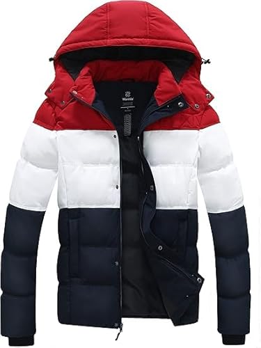 Wantdo Homme Hiver Vestes en Coton Classique Coupe Mince Manteau à Capuche Doublure Sherpa Veste de Style Militaire Veste Décontractée Bleu Foncé + Rouge + Blanc XL