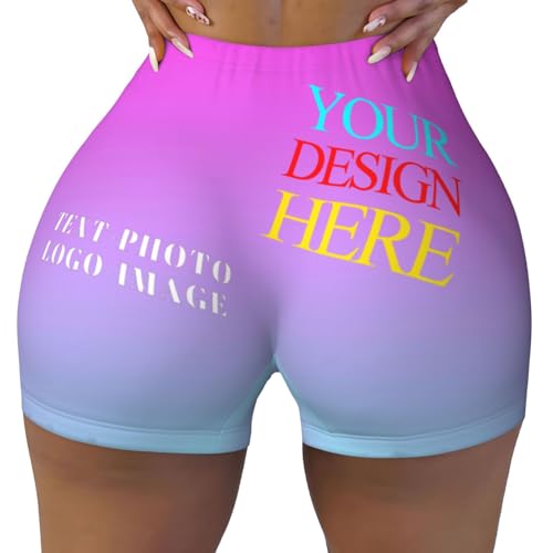 LLLGSH Femmes Short de Sport Personnalisé, Shorts de Sport Femme Scrunch Butt Personnalisé, Short Legging Femme Personnalisé avec Photo/Texte, pour Yoga Fitness Jogging Danse Gym, S-XXL