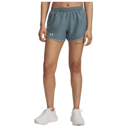 Under Armour Fly by Short 3 Pouces Femmes, Short Running léger pour Femme, Short Femme Respirant pour Le Sport, Jasper Blue/Serpentine/Reflective, L, Jasper Blue/Serpentine/Reflective, SM