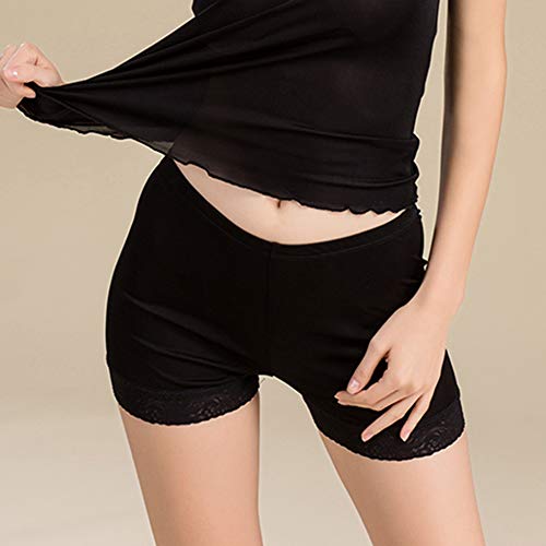Egurs Femmes sous Jupe Shorts Pantalon De Sécurité Doux Anti Frottement Stretch Dentelle Garniture Leggings Short Pantalon en 100% Soie Noir L