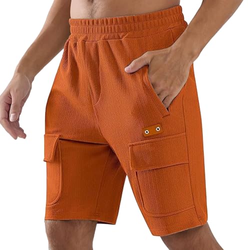 Short Sport Homme - Short Décontracté en Velours Côtelé Respirant Coupe Ample Pantalon De Sport Confortable avec Taille Élastique pour Les Activités De Plein Air (Orange L)