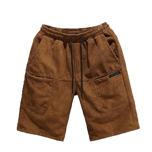 Short Homme - Short Décontracté en Velours Côtelé Respirant Coupe Ample Pantalon De Sport Confortable avec Taille Élastique pour Les Activités De Plein Air (Khaki XL)