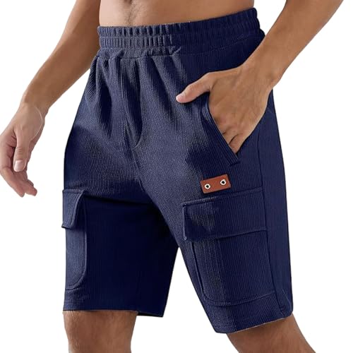 Bermuda Homme Grande Taille - Short Décontracté en Velours Côtelé Respirant Coupe Ample Pantalon De Sport Confortable avec Taille Élastique pour Les Activités De Plein Air (Navy L)