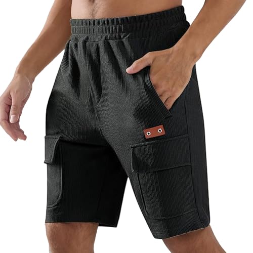 Pantalon Court Homme - Short Décontracté en Velours Côtelé Respirant Coupe Ample Pantalon De Sport Confortable avec Taille Élastique pour Les Activités De Plein Air (Black XXL)
