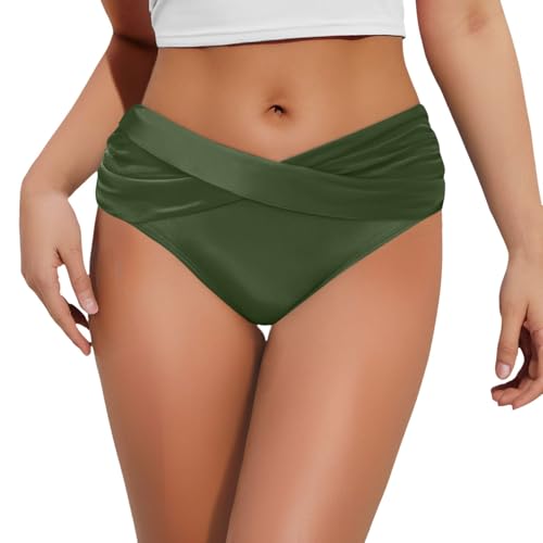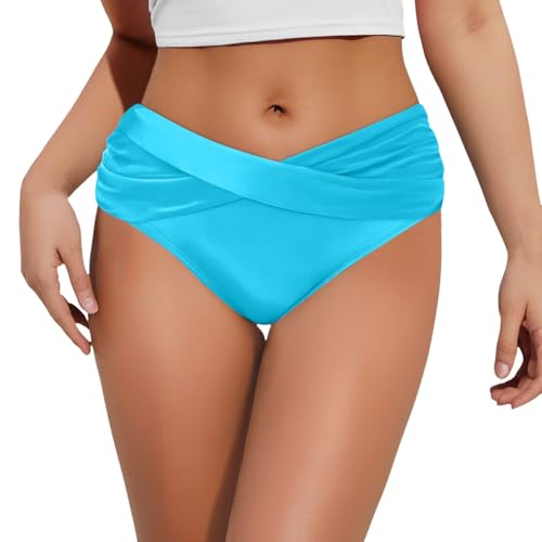 Shorty De Bain Femme -Bas de bikini taille haute pour femme slip de bain short de plage bas froncé bas de bain coupe haute bas de maillot de bain à couverture complète short de sport et de yoga
