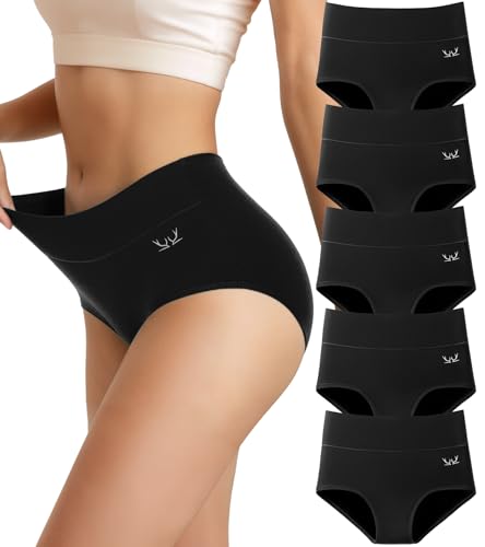 RUIXUE Culotte Femme Coton Taille Haute Lot de 5 Sport Shorts sous-vêtements Extensibles pour Femmes Elasticité Ventre Plat Post Accouchement Gainante Slip Shorts Shorty
