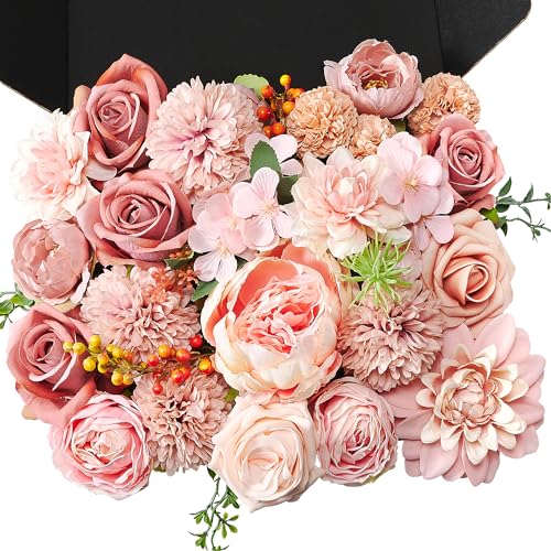 YZXZM Artificial Flowers Combo Box, Fake Silk Foam Flower Mix with Wire Stem, DIY Wedding Bridal Bouquet Shower Party Home Décor (30-40 Pieces) (Pink)