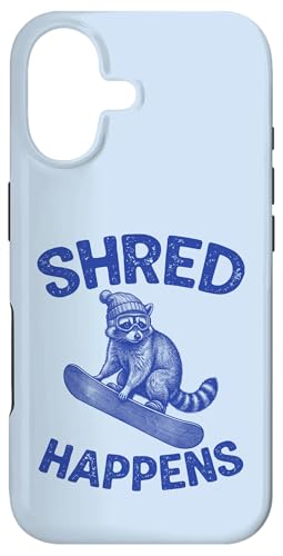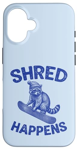 Raccoon Snowboard Shred Happens Sports d'hiver Amusants Coque pour iPhone 16