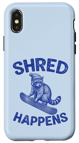 Raccoon Snowboard Shred Happens Sports d'hiver Amusants Coque pour iPhone X/XS