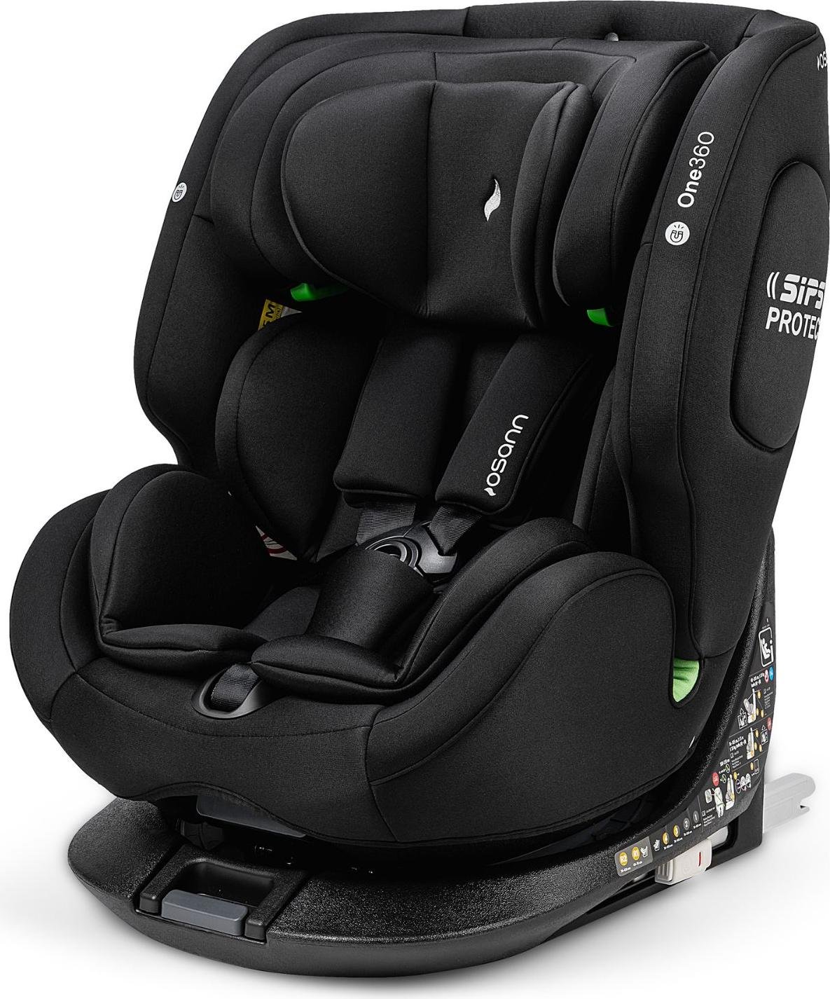 OSANN - Siège auto bébé/enfant One360 Rotatif 360° Isofix - 40-150 cm - 0 à 12 ans - Groupe 1/2/3 - Noir, Hauteurs 14 positions, Dos/Face à la route, Supports magnétiques pour sangles d'épaules