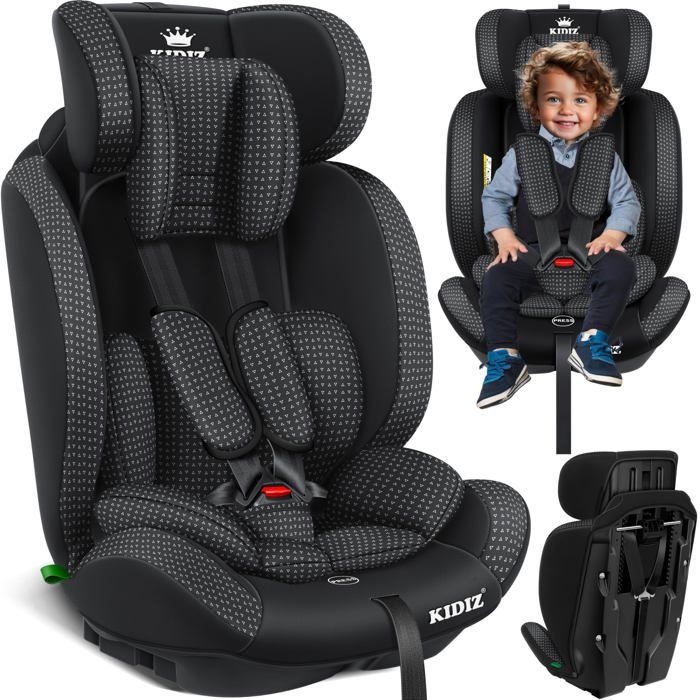 KIDIZ® Siège auto pour enfants et bébé 9-36 kg Groupe 1+2+3 Ceinture de sécurité à 5 Points Appuie-tête réglable et Évolutif Noir