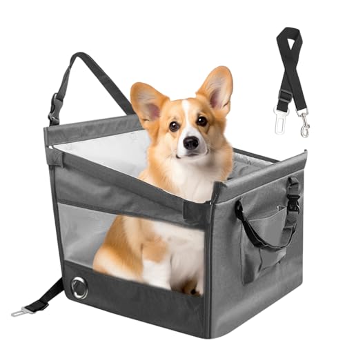 WIYETY Siège auto pour chien extra stable : 40 x 32 x 22 cm, imperméable, respirant, avec ceinture de sécurité, siège auto pour chien, chat, autres petits animaux domestiques, gris
