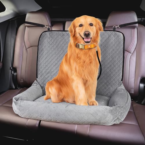 Todeco Siège Auto pour Chien de Grande et Moyenne Taille, Siege Auto Chien Amovible et Lavable avec Ceintures, Sangles de Fixation et Poches de Rangement Latérales, pour Tout Type de Voiture, Gris