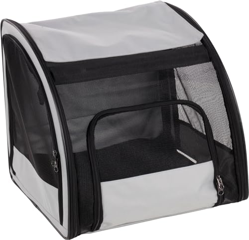 Flamingo Siège Auto pour Chien Rey Gris Clair - 45x38,5x41cm - Debout - Fond Amovible - Ouvertures avec Fermeture éclaire à l'avant et au côté