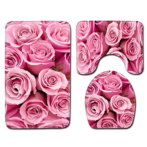 FANSU Lot de 3 Tapis Salle de Bain, Tapis de Bain Antiderapant et Tapis Contour WC Absorbants Lavable Doux Couverture de Toilette Siège pour Baignoire,Douche (45x75cm,Rose Rose)