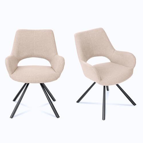 MEUBLE COSY Lot de 6 Chaises Salle à Manger Scandinave avec Dossier et Accoudoirs Fauteuil pour Salon Cuisine Bureau, Siège Rembourré en Tissu Pieds en Métal, Beige, 58,5x59x81cm