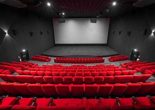 CORFOTO 2.7x1.8m Toile de Fond de Salle de cinéma Moderne, siège de cinéma Rouge Vide, arrière-Plan de soirée cinéma, thème de Film, Toile de Fond de Photographie, Accessoire de photomaton