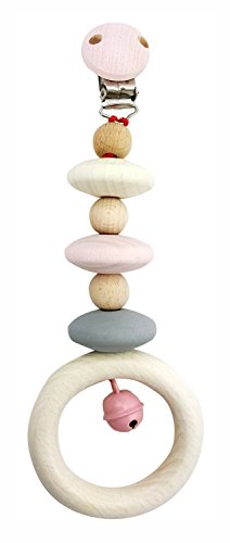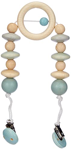 Hess Holzspielzeug 12968 - Chaîne de Landau en Bois, pour Les bébés à partir de 3 Mois, Fait Main, Bleu Nature, avec 2 Clips de sécurité, Longueur env. 49 cm, pour Landau et siège Auto pour bébé