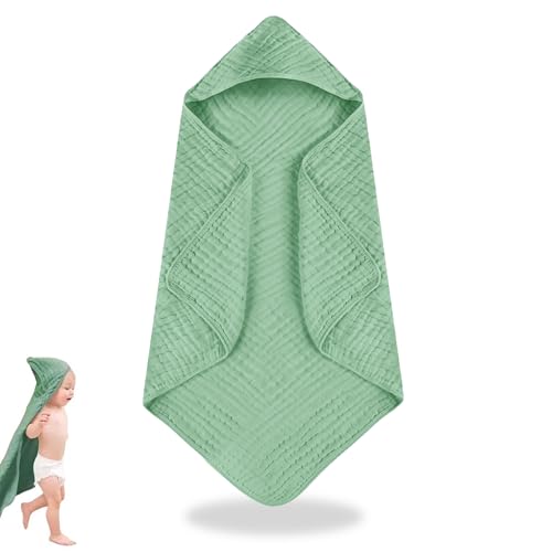 lulumoon Serviette de Bain Bebe: 76x76cm Mousseline de Coton Cape de Bain Bebe-Douce et Absorbante, Garde Bébé au Chaud Après Le Bain-Convient pour 0-18 Mois(Vert)