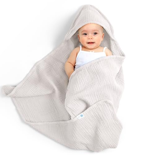 lulumoon Serviette de Bain Bebe: 76x76cm Mousseline de Coton Cape de Bain Bebe-Douce et Absorbante, Garde Bébé au Chaud Après Le Bain-Convient pour 0-18 Mois(Qatmeal)