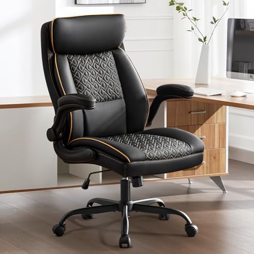 Hellove Chaise Bureau Ergonomique, Fauteuil de Bureau Confortable avec Accoudoir Rabattable, Siege d’Ordinateur Rembourrée Épaisse Capacité 185kg, Chaise Pivotante avec Hauteur Réglable, Noir