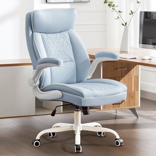 Hellove Chaise Bureau Ergonomique, Fauteuil de Bureau Confortable avec Accoudoir Rabattable, Siege d’Ordinateur Rembourrée Épaisse Capacité 185kg, Chaise Pivotante avec Hauteur Réglable, Bleu