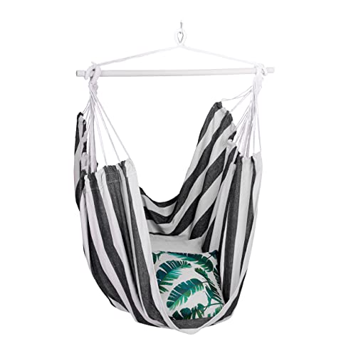 Relaxdays Hamac, Coton, siège Suspendu pour intérieur & extérieur, 150 kg, Enfants & Adultes, Noir - Blanc