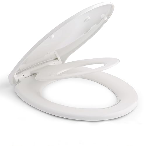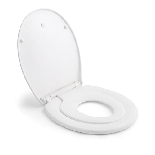 Siège de toilette allongé avec siège pour enfant - Fermeture douce intégrée - Abattant de toilette familial avec siège d'apprentissage de la propreté - Blanc