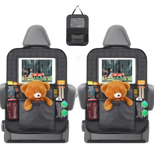 Romon Organisateur de Voiture, Enfant Facile à Entretenir, Arrière Support pour Tablette Transparent, Protection Siege Voiture Enfant, Noire Grille(2 pièces)