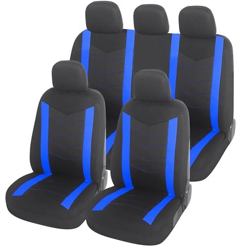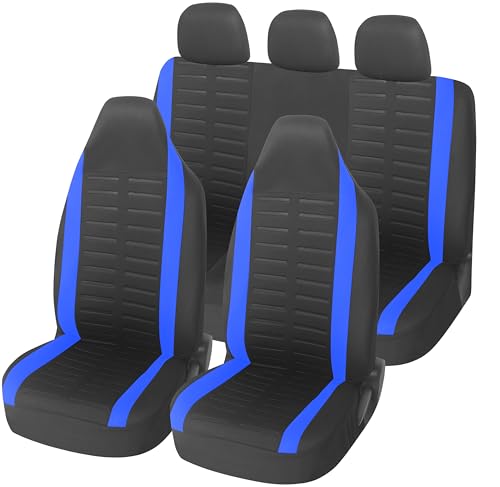 upgrade4cars Housse de Siege Voiture Appui Tête Intégré Universelle Noir Bleu | Ensemble de Housses Siège Auto Universel | Couvre Sieges pour Avant et Arrière