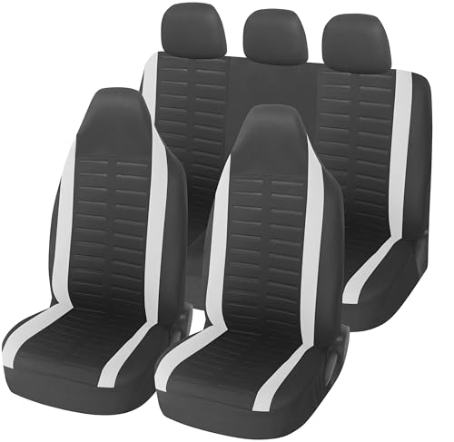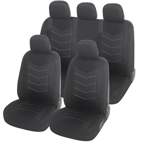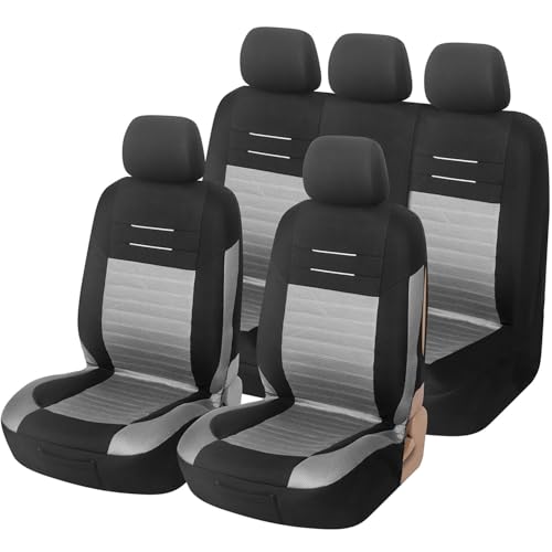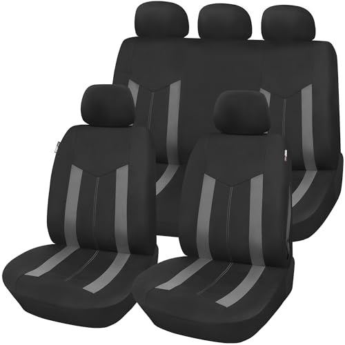 upgrade4cars Housse de Siege Voiture Appui Tête Intégré Universelle Noir Gris | Ensemble de Housses Siège Auto Universel | Couvre Sieges pour Avant et Arrière