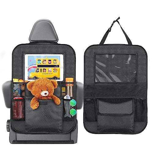 Romon Organisateur de Voiture, Enfant Facile à Entretenir, Arrière Support pour Tablette Transparent, Protection Siege Voiture Enfant, Noire Grille