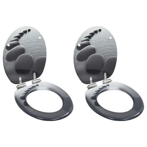 lot de 2 Sieges WC MDF couvercle a fermeture en douceur Pierres