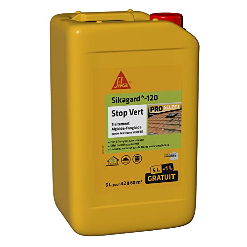 SIKA - Traitement algicide et fongicide - Nettoyant désincrustant - Sikagard 120 Stop Vert - Prêt à l'emploi - Elimine algues et lichens - Mur - Toiture - Terrasse - Façade - Dallage - 6L