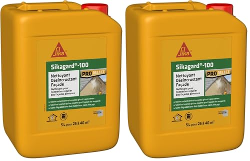 SIKA - Nettoyant de façade - Sikagard 100 - Désincrustant - Multisupports -Idéal contre les traces noires, vertes et rouges - Sans rinçage - Prêt à l'emploi - Pour 25 à 40m2-5L (Lot de 2)