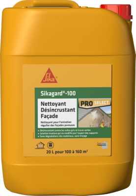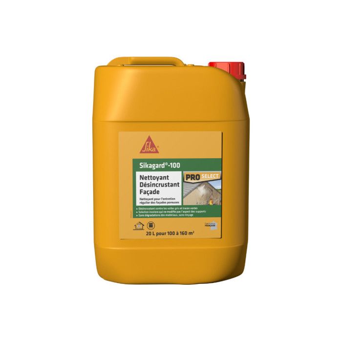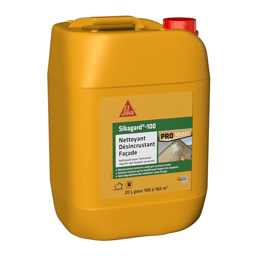 SIKA - Nettoyant de façade - Sikagard 100 - Désincrustant - Multisupports -Idéal contre les traces noires, vertes et rouges - Sans rinçage - Prêt à l'emploi - Pour 100 à 160m2-20L