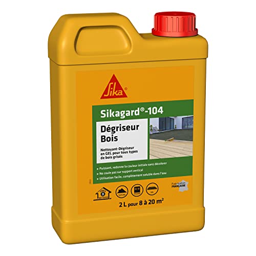 SIKA - Nettoyant dégriseur bois - Sikagard 104 - Tous types de bois - Toiture, façade, sol, mobilier de jardin, clôture, bardage - Ravive les couleurs du bois - Prêt à l'emploi - Pour 8 à 20m2-2L