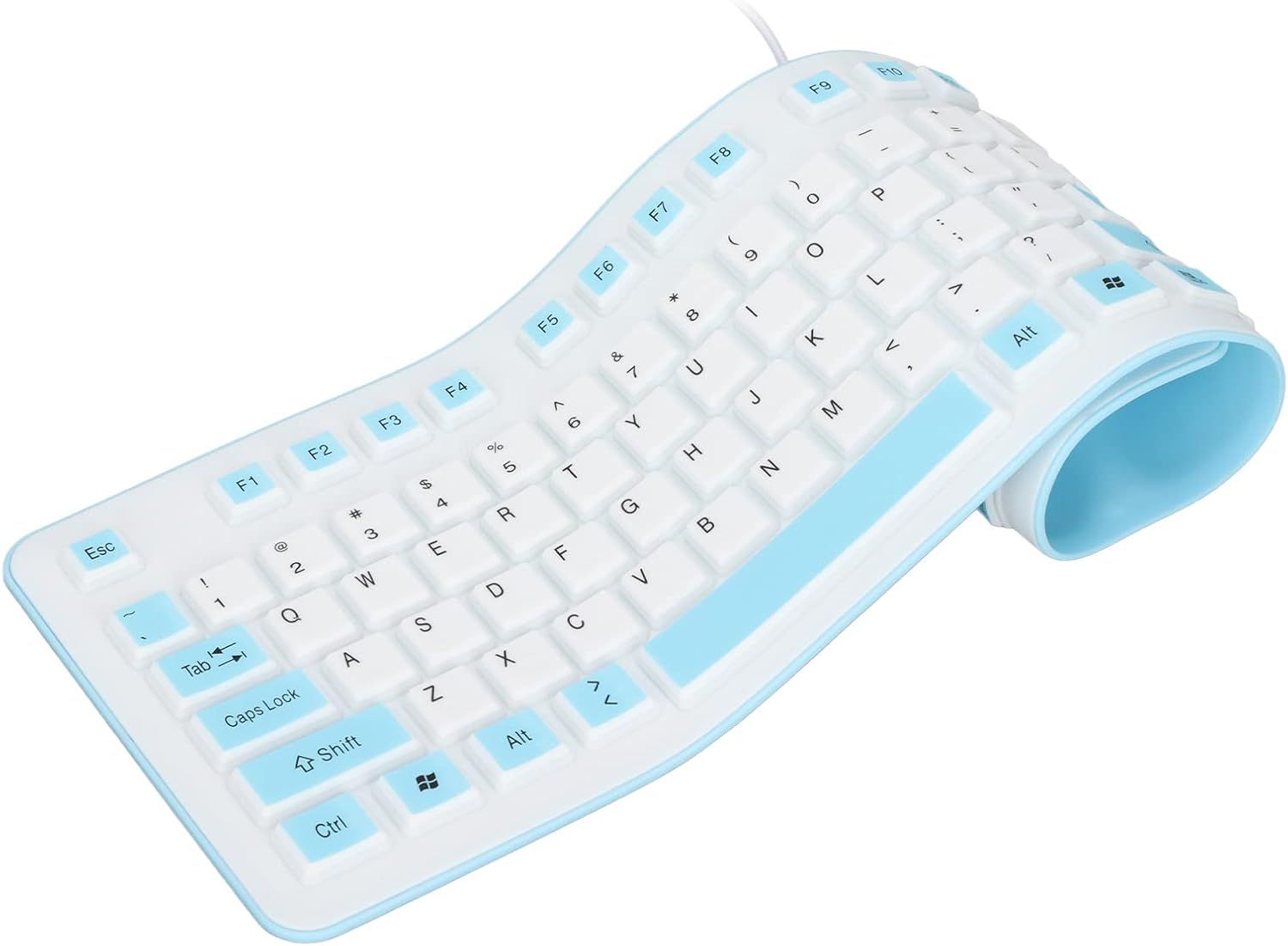 Phefop Clavier Pliable en Silicone, étanche à l'eau et à la Poussière, Filaire USB, Silencieux, 106 Touches, pour PC Portable, étudiants Travaillant (Blue)