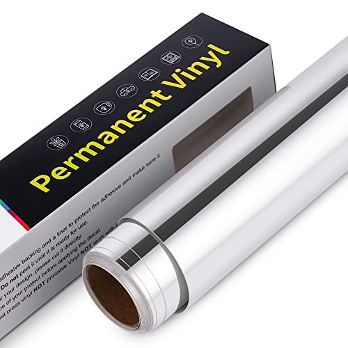 Vinyle Adhésif Permanent - 30,5 cm x 305 cm Rouleau de Vinyle Imperméable Permanent, Vinyle Permanent Adhésif pour Cricut, Silhouette Cameo, Décalcomanies, Décorations (Argent Chromé)