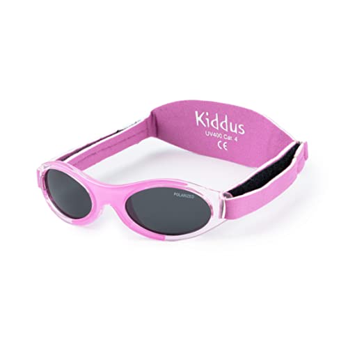 Kiddus Lunettes de soleil Polarisées Premium pour bébé, garçon, fille. De 0 mois à 2 ans. Protection Solaire UV400. Pont de nez en Silicone. Bande réglable en Neoprène