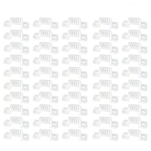 Lot de 50 clips de fixation en silicone pour bande lumineuse LED avec 100 vis pour bande de 13 mm de largeur maximale (13 mm), transparent