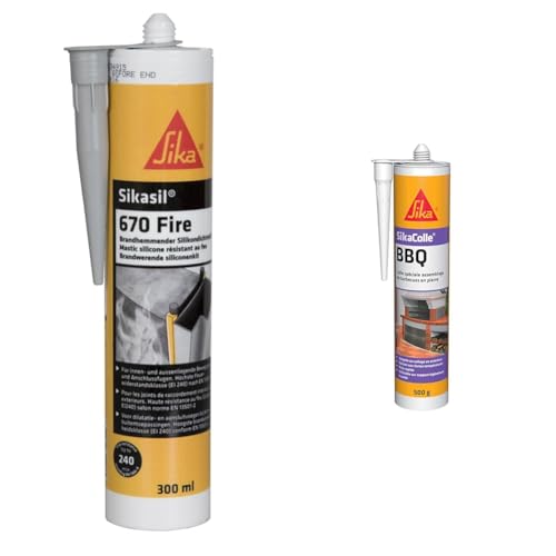 SIKA 670 Fire, Mastic silicone résistant au feu, 300ml, Gris & olle BBQ, Colle spéciale assemblage de petits barbecues en pierre, 500g, Beige clair