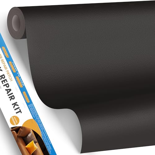 Hode Simili Cuir Autocollant pour Réparation Canapé Noir 10x200cm, Rouleau Patch de Réparation en Cuir, Patch Cuir Auto-adhésif Rénovation pour Siège, Meubles, Vestes